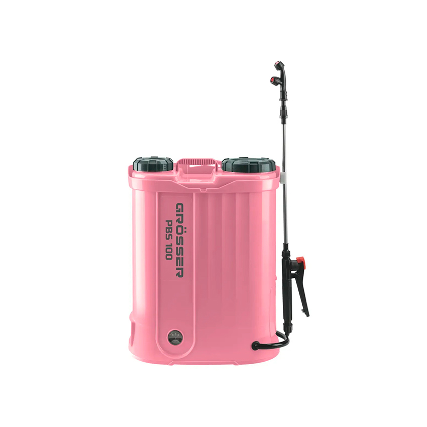 Аккумуляторный опрыскиватель Grosser PBS 100 относится к линейке инструмента «Pink Edition» имеет яркий и оригинальный розовый цвет. Данный распылитель оснащён баком объём которого составляет 10 литров, а так же имеет компактные габариты.