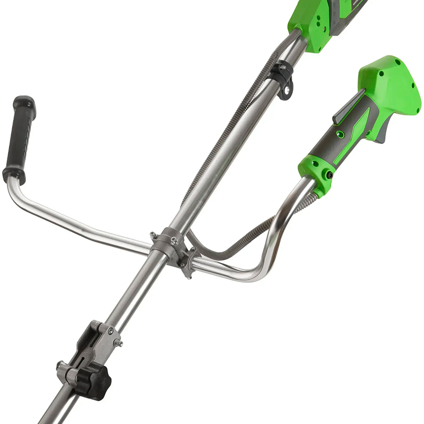 Коса аккумуляторная имеет разборную штангу и велосипедные ручки позволяющие надёжно контролировать инструмент во время работы. Предназначена для кошения травы и молодого кустарника на дачном, приусадебном участке.