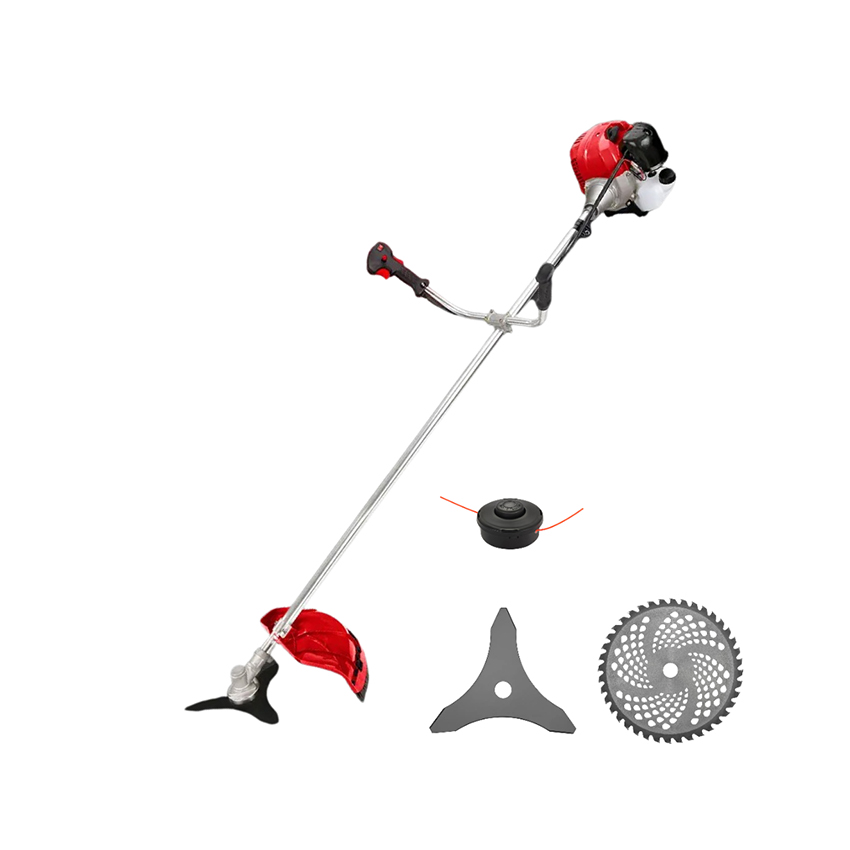 Бензиновый триммер оснащён надёжными редукторами, в качестве привода установлен цельный металлический вал. Газонокосилка бензиновая поставляется с фирменными ножами предназначенные для любого вида травы ( улучшенный 3-х лопастной, диск 40 зубьев с победитовыми напайками), а так же шпулей с леской.