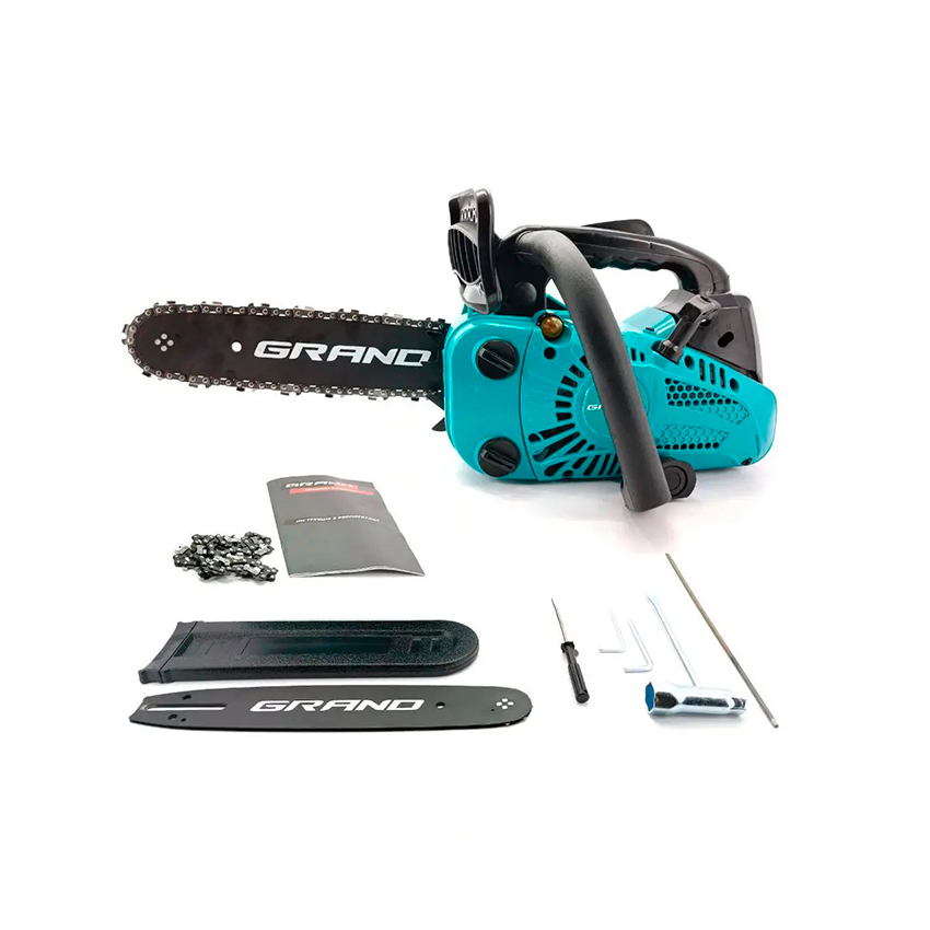 Бензиновая пила от торговой марки «Grand» создана на основе 2-х тактного двигателя нового поколения обладающий реальной мощностью 3500 Вт (4.7 л. с). Рабочий объём двигателя составляет 26 куб.см, фирменная поршневая с хромированым напылением обладает высоким ресурсом, двигатель сверхэкономный но при этом тяга и мощность выходная высокая, что позволяет использовать данный сучкорез как в быту так и в полупрофессиональных условиях.