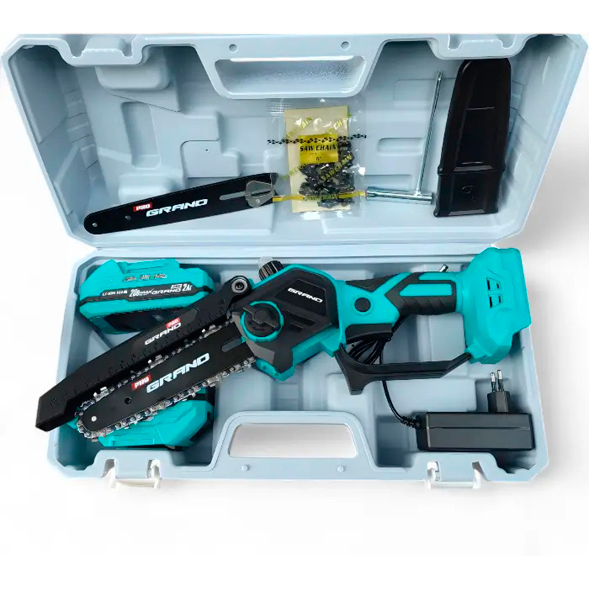 Описание Аккумуляторная цепная пила Grand АПЦ-6/2-2 Бесщёточная (2 шины+2 цепи в кейсе)