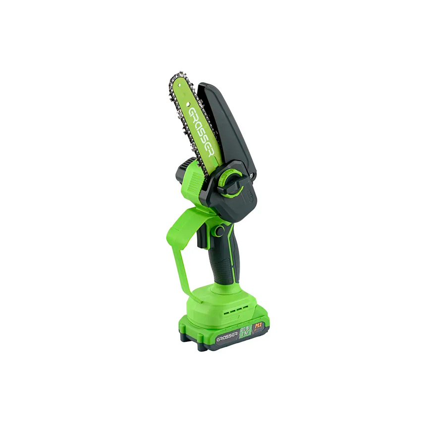 Аккумуляторная мини пила Grasser GCS 602 работает от аккумуляторной батареи с напряжением 20 Вольт и ёмкостью — 2,0 А/ч, в комплекте поставляется 1 батарея.